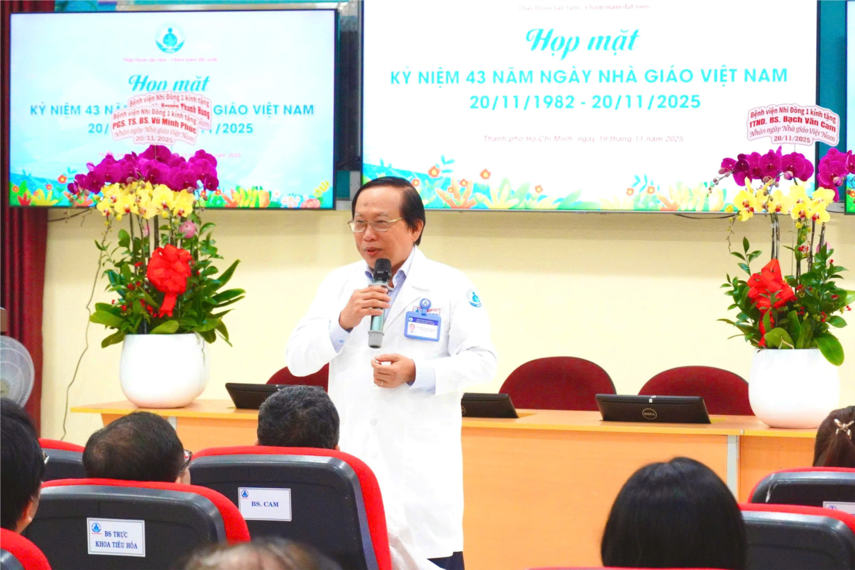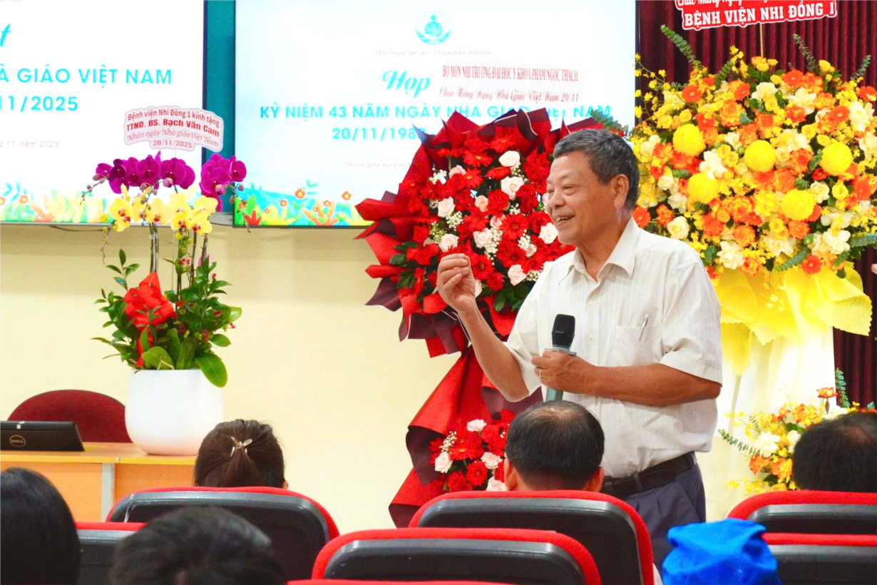 - Trong ngày họp mặt thân mật, Thầy Bạch Văn Cam đã có những lời gửi gắm, nhắn nhủ đến các thế hệ bác sĩ, điều dưỡng, kỹ thuật viên và toàn thể nhân viên Bệnh viện Nhi đồng 1 cùng các anh chị học viên sau đại học, các bạn sinh viên các trường Y Dược đang làm việc, học tập và nghiên cứu tại Bệnh viện Nhi đồng 1 phải phát huy hơn nữa tinh thần học tập, phát triển mạnh mẽ về chuyên môn nhất là trong các lĩnh vực chuyên khoa sâu để đưa Bệnh viện Nhi Đồng 1 thực sự là bệnh viện hàng đầu về chuyên khoa Nhi của cả nước, vươn tầm khu vực và quốc tế nhân dịp kỷ niệm 43 năm ngày Nhà giáo Việt Nam. Thầy Bạch Văn Cam khẳng định vai trò của người Thầy giáo suốt sự nghiệp trồng người, nhất là đào tạo thầy thuốc trong thời đại công nghệ số với sự hỗ trợ của trí tuệ nhân tạo, người Thầy càng thể hiện vị trí và tầm quan trọng không thể thay thế trong ngành khoa học sức khỏe.