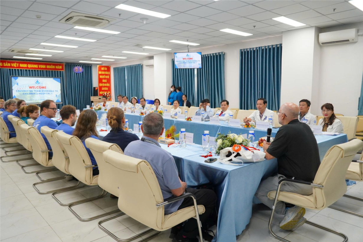 - Trong thời gian làm việc tại bệnh viện, đoàn CTO đã phối hợp chặt chẽ với các khoa liên quan tổ chức chuỗi hội chẩn các trường hợp bệnh phức tạp, tập trung vào những trường hợp dị tật đại – trực tràng nhi cần chiến lược điều trị dài hạn. Các buổi hội chẩn được triển khai kết hợp truyền hình trực tiếp từ phòng mổ ra phòng chờ, tạo điều kiện cho đông đảo bác sĩ, học viên sau đại học, nhân viên y tế trong và ngoài bệnh viện cùng tham gia học tập, trao đổi. Qua đó, nhiều kinh nghiệm quý báu về chỉ định phẫu thuật, kỹ thuật can thiệp, chăm sóc hậu phẫu và theo dõi lâu dài đã được chia xẻ, giúp cập nhật các tiếp cận điều trị tiên tiến theo chuẩn quốc tế.