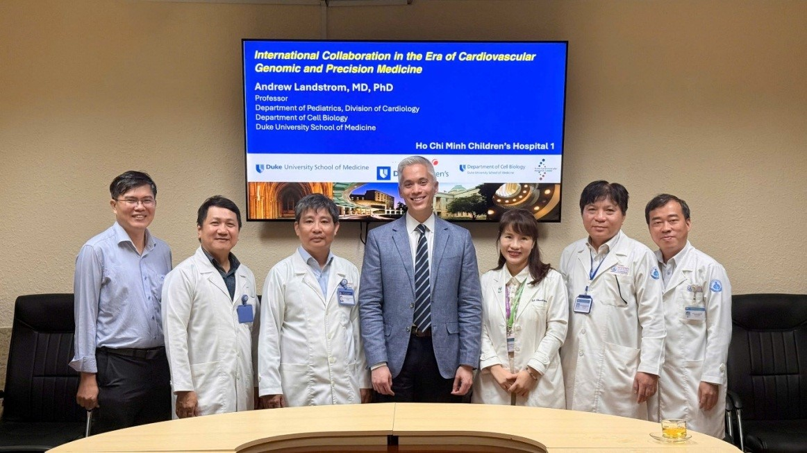 - Buổi làm việc với PGS. Andrew Landstrom không chỉ mang lại giá trị học thuật thiết thực cho khoa Tim Mạch mà còn tiếp tục khẳng định vai trò, uy tín và định hướng phát triển chuyên sâu của Bệnh viện Nhi Đồng 1 trong lĩnh vực tim mạch nhi và di truyền học. Việc chủ động kết nối với các trung tâm nghiên cứu lớn như Đại học Duke cho thấy nỗ lực của bệnh viện trong mở rộng hợp tác quốc tế, cập nhật y học chính xác và phát triển nghiên cứu khoa học, hướng đến nâng cao chất lượng chẩn đoán, điều trị và chăm sóc toàn diện cho bệnh nhi.