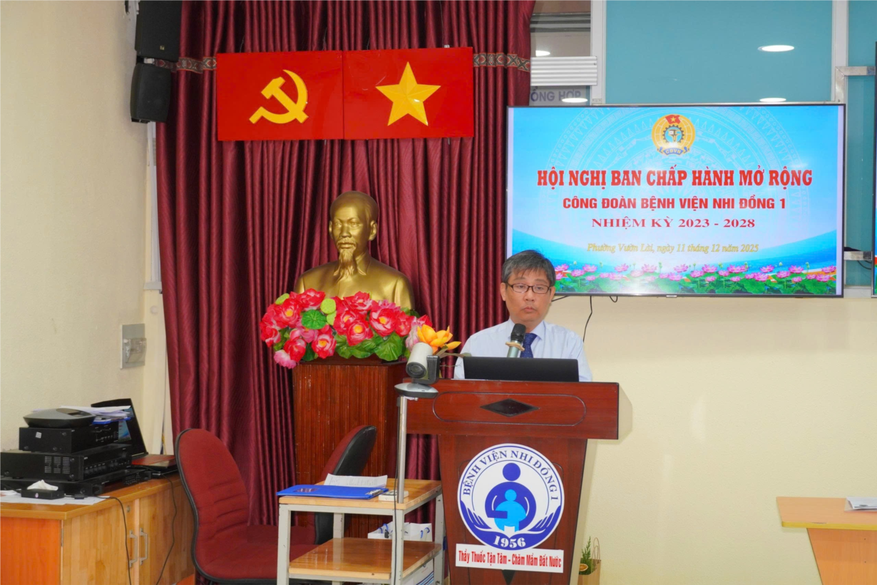 Ngày 11 tháng 12 năm 2025, Ban chấp hành Công đoàn Bệnh viện Nhi Đồng 1 đã long trọng tổ chức “Hội nghị Ban chấp hành mở rộng, Công đoàn Bệnh viện Nhi Đồng 1, Nhiềm kỳ 2023 – 2028” kéo dài nhiệm kỳ đến năm 2030