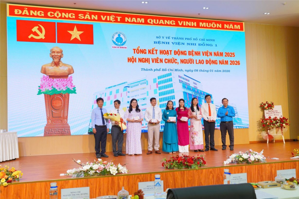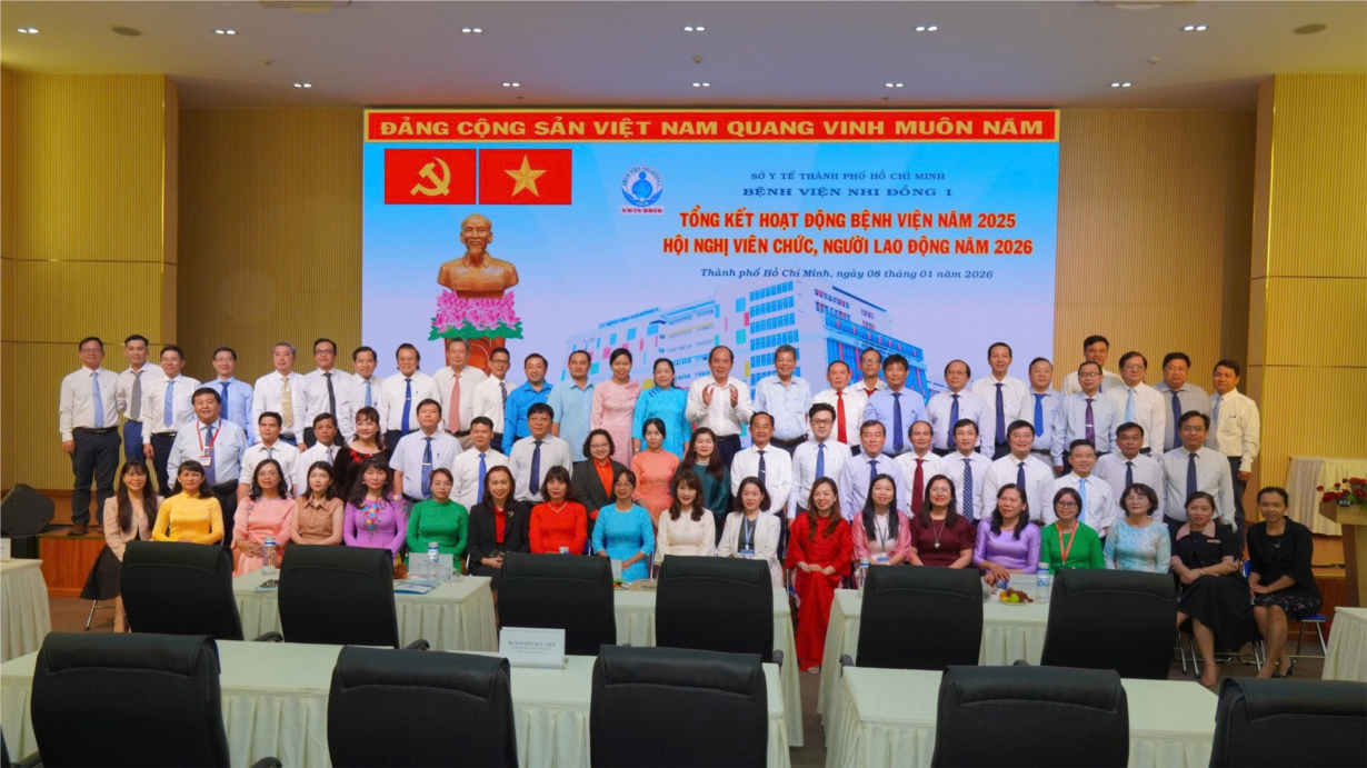 Căn cứ Công văn số 3702/LĐLĐ ngày 23/10/2025 của Liên Đoàn Lao động Thành phố Hồ Chí Minh về việc thực hiện dân chủ ở cơ sở năm 2026; Căn cứ Kế hoạch số 310/KH-BVNĐ1 ngày 09/12/2025 của Giám đốc Bệnh viện Nhi Đồng 1, ngày 08/01/2026 Bệnh viện Nhi Đồng 1 đã long trọng tổ chức Hội nghị viên chức, người lao động năm 2026.