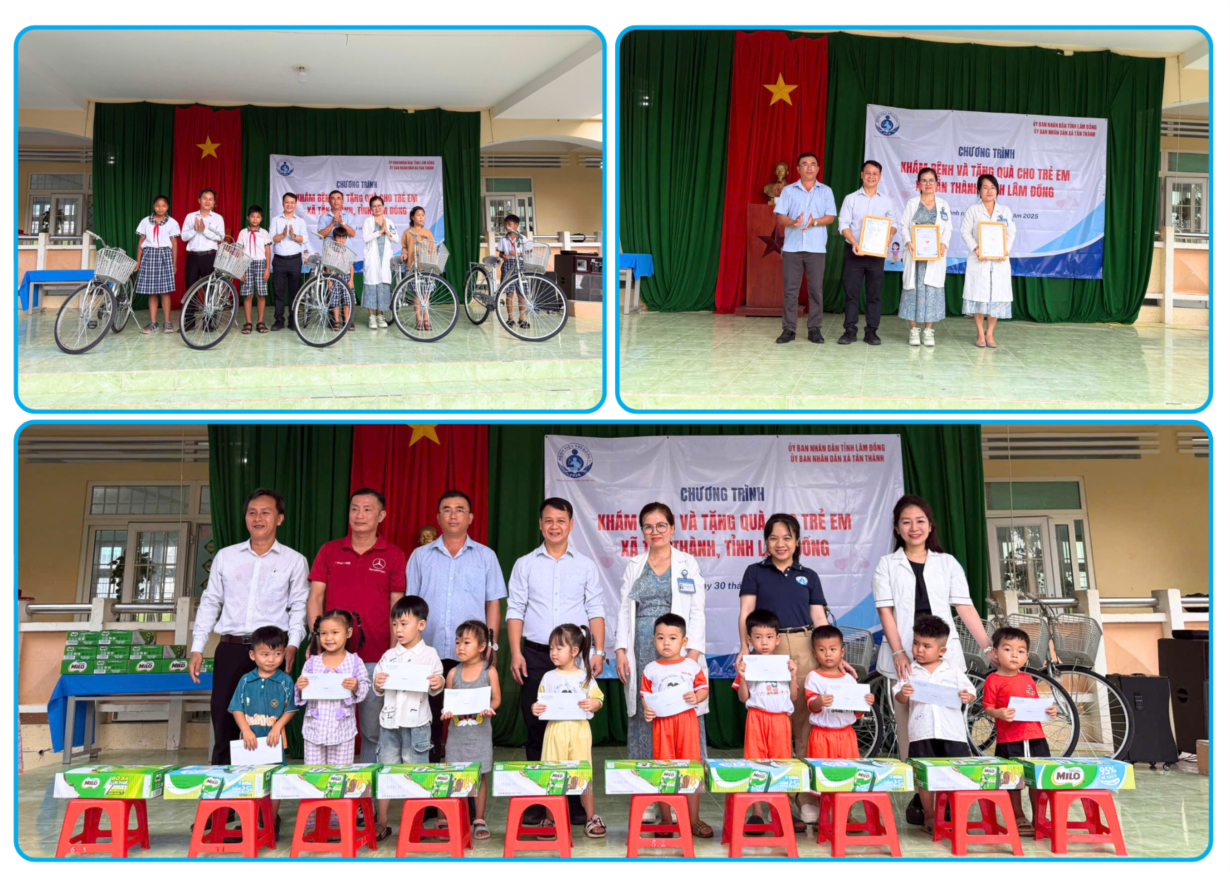 Bên cạnh hoạt động khám bệnh, đoàn công tác của Bệnh viện Nhi Đồng 1 còn trao tặng 20 chiếc xe đạp cho học sinh khó khăn nhằm hỗ trợ các em có phương tiện đi lại tốt hơn, trao tặng 20 phần quà gồm tiền mặt và sữa cho 20 trẻ em diện gia đình khó trên địa bàn và trao tặng gần 500 phần quà gồm bánh, sữa và dụng cụ học tập cho trẻ em tại xã khi đến khám bệnh.
