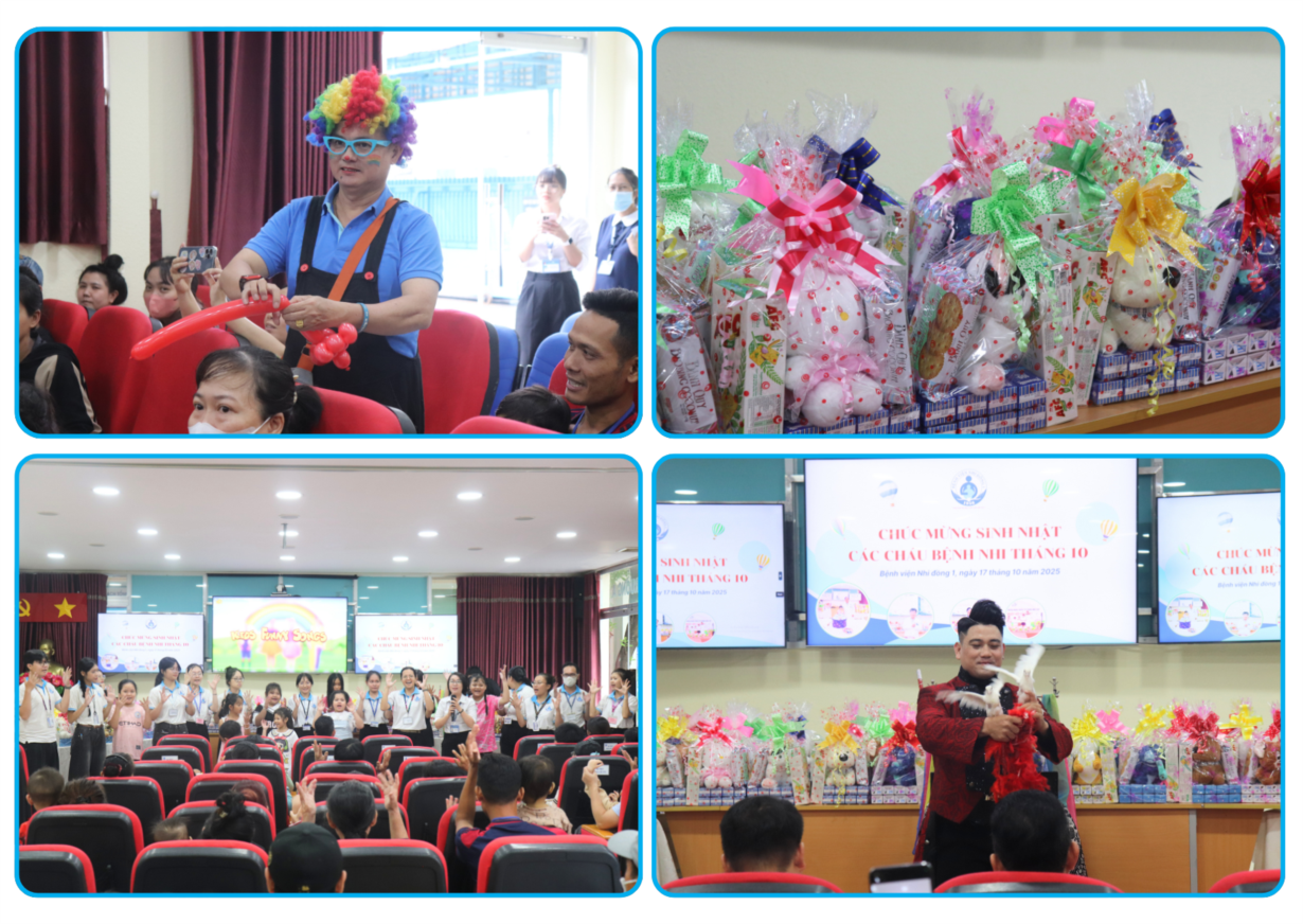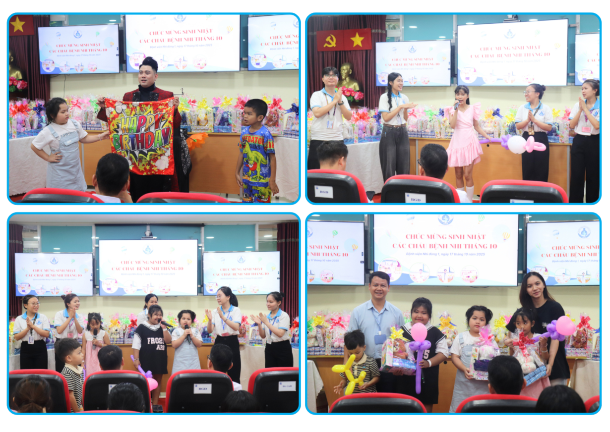 Vào chiều ngày 17 tháng 10 năm 2025, phòng Công tác xã hội Bệnh viện Nhi đồng 1 đã tổ chức Chương trình “Sinh nhật hồng tháng 10” dành cho các cháu bệnh nhi có ngày sinh nhật trong tháng. Với mong muốn mang lại cho các cháu bệnh nhi đang điều trị tại Bệnh viện có một kỷ niệm vui ấm áp nhân dịp sinh nhật.