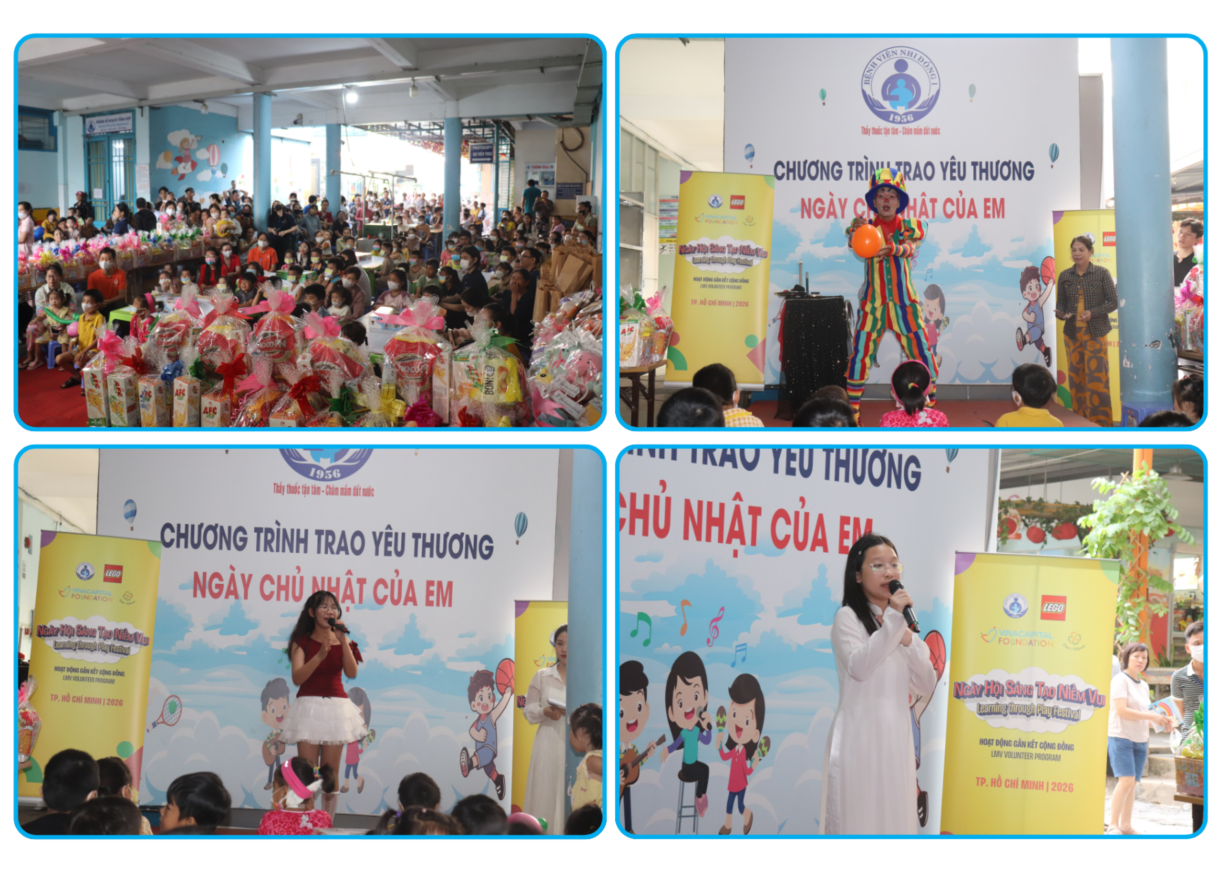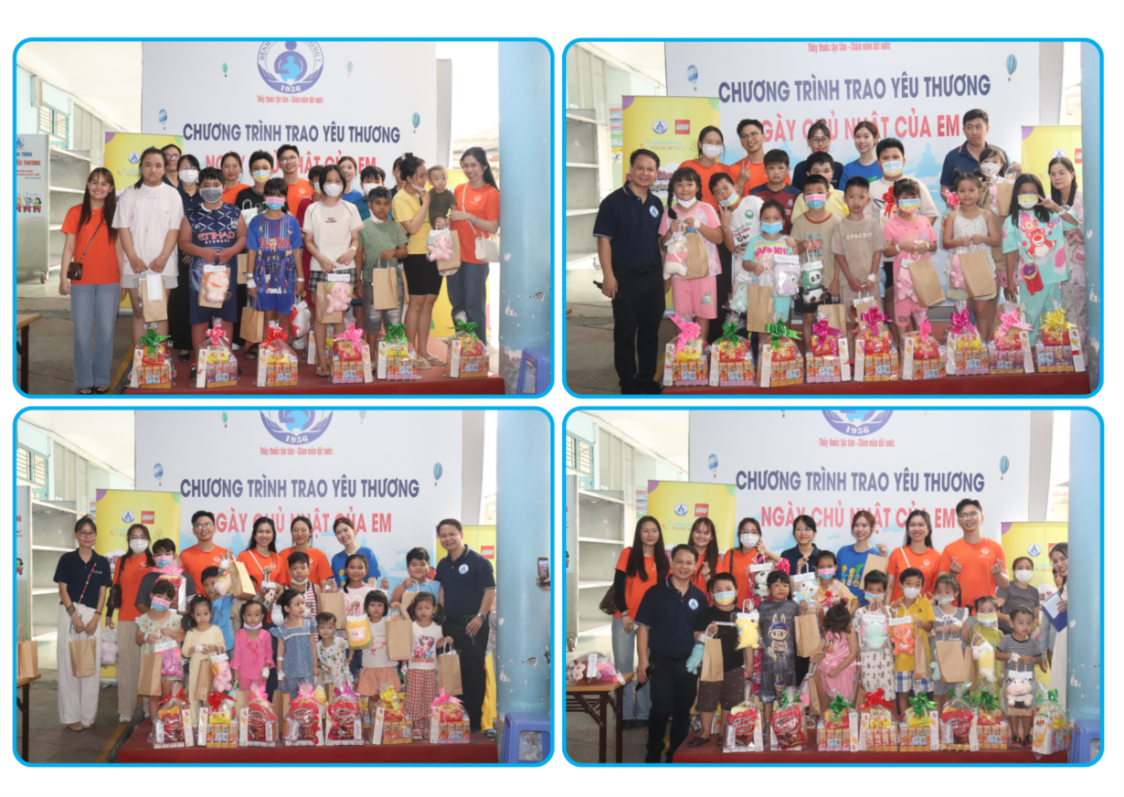 Phòng Công tác Xã hội chân thành cảm ơn sự chung tay của quý nhà hảo tâm đã luôn đồng hành tổ chức Chương trình trao yêu thương “Ngày Chủ nhật của em” mỗi tuần dành cho các cháu bệnh nhi, rất mong sự chung tay của quý nhà hảo tâm để chương trình được diễn ra đều đặn giúp các cháu bệnh nhi có một buổi sáng chủ nhật cuối tuần thật vui và ý nghĩa.