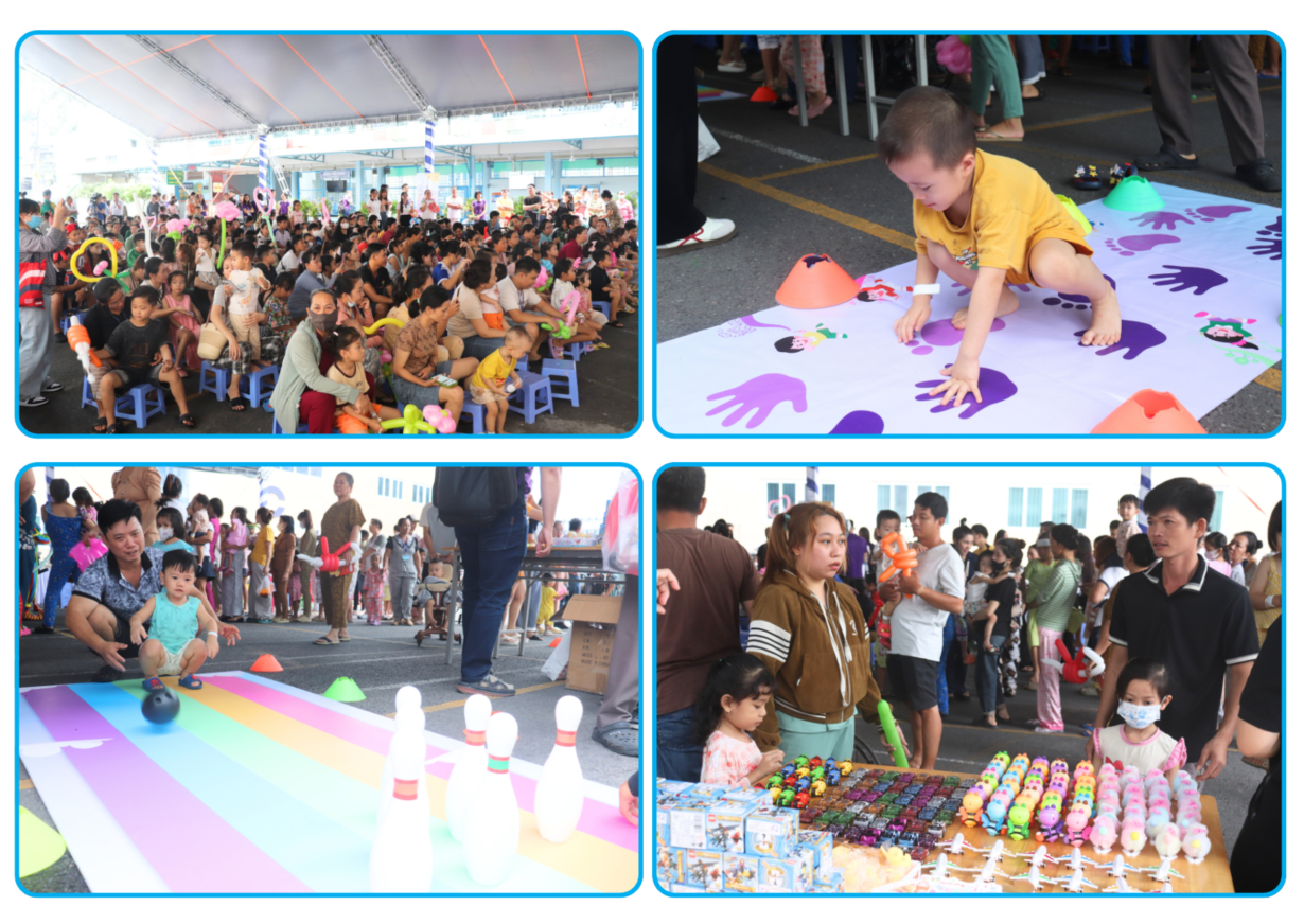 Không khí tại khu vui chơi trở nên rộn ràng với nhiều gian hoạt động đặc sắc như: vẽ tranh tô màu, nặn đất sét, trò chơi vận động nhẹ, xem biểu diễn ảo thuật, giao lưu với chú hề, xếp bóng cầu vòng, bowling mặt trời, truy tìm khó báu....và nhận quà tặng. Dù đang mang trong mình bệnh tật, các em vẫn háo hức tham gia, nụ cười rạng rỡ vui tươi như đang ở nhà.