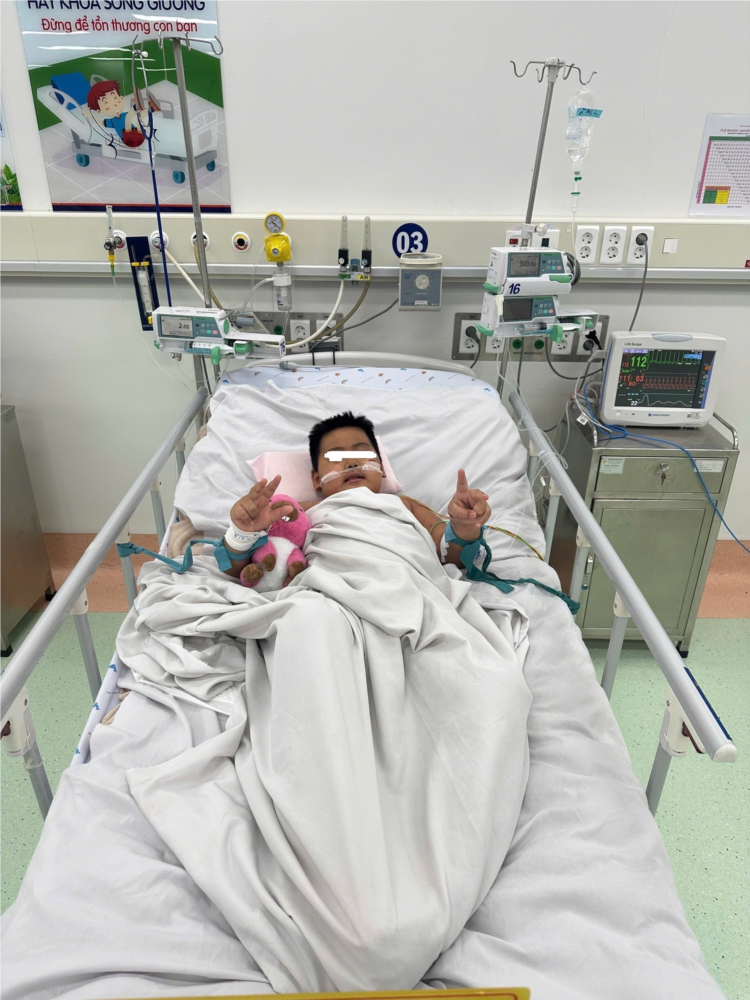 - Tại khoa Hồi sức tích cực, bệnh nhi sốt cao liên tục, tổn thương gan tiếp tục tăng kèm hôn mê gan, tổn thương thận cấp nên được đặt nội khí quản thở máy, điều trị suy gan thận bằng lọc máu liên tục, thay huyết tương, truyền thuốc N-acetyl cystein, chống phù não, truyền các chế phẩm máu. Tình trạng bệnh nhi vẫn sốt cao liên tục, kết quả xét nghiệm cho thấy bệnh nhi có hội chứng thực bào máu với phản ứng viêm tăng rất cao, đặc biệt ferritin tăng gần 80.000 µg/L (trong khi chỉ cần ferritin > 500 µg/L là có thể thỏa 1 tiêu chuẩn chẩn đoán hội chứng thực bào máu). Ngay lập tức các bác sĩ Hồi sức và Huyết học hội chẩn và quyết định dùng Dexamethasone để chống viêm, điều trị hội chứng thực bào máu. Sau 24 giờ, bệnh nhi bớt sốt và tổn thương gan tạm ổn định. Sau gần 3 tuần hồi sức tích cực với thở máy, lọc máu, thay huyết tương, điều hòa miễn dịch, bệnh nhi đã ổn định tình trạng hô hấp, huyết động học, chức năng gan, thận, đông máu về bình thường. Hiện tại bệnh nhi tỉnh táo, ăn uống được và dự kiến có thể xuất viện trong vài ngày tới.