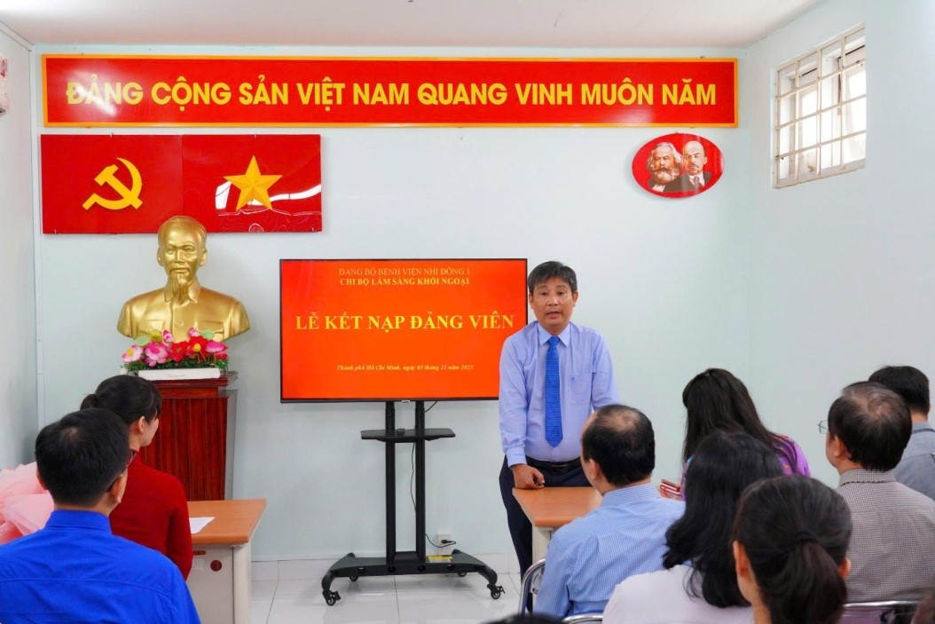 - Phát biểu chỉ đạo tại buổi lễ, đồng chí Ngô Ngọc Quang Minh, Bí thư Đảng ủy Bệnh viện Nhi Đồng 1 chúc mừng hai đồng chí Tạ Hoàng Hồng Phượng và Nguyễn Thành Công Minh sau một thời gian dài nỗ lực phấn đấu, tu dưỡng đã vinh dự được đứng vào hàng ngũ của Đảng. Đồng chí cũng biểu dương Chi bộ Lâm sàng khối Ngoại và Chi bộ Hậu cần 2 đã làm tốt công tác bồi dưỡng, phát triển đảng viên mới, góp phần xây dựng Đảng bộ Bệnh viện ngày càng trong sạch vững mạnh. Đồng chí nhấn mạnh, được kết nạp vào Đảng là một vinh dự to lớn nhưng cũng là một trách nhiệm mới, do đó các đồng chí đảng viên mới phải tiếp tục phát huy tinh thần tiên phong, gương mẫu, không ngừng học tập, rèn luyện bản lĩnh chính trị, nâng cao năng lực chuyên môn, giữ gìn phẩm chất đạo đức. Đặc biệt, trong môi trường bệnh viện, người đảng viên phải là tấm gương sáng về y đức, về tinh thần “Lương y phải như từ mẫu”, đặt lợi ích của bệnh nhi và tập thể lên trên hết.