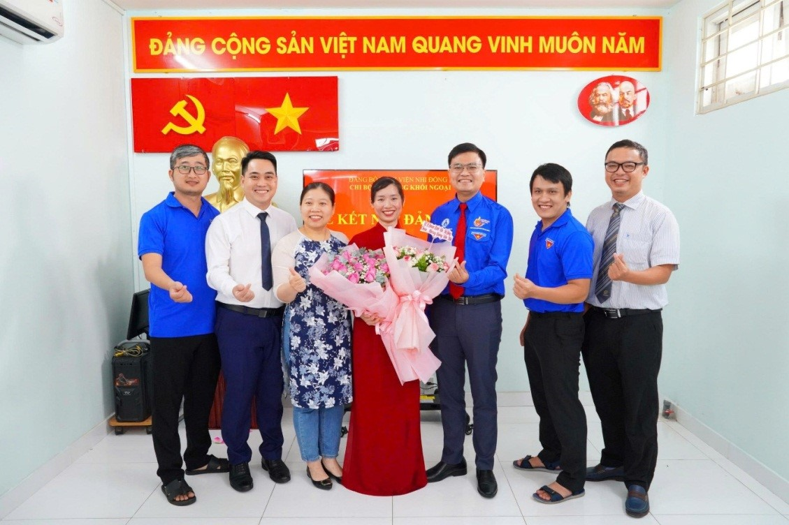 - Trong niềm vui chung, đồng chí Nguyễn Ngọc Phúc, Bí thư Đoàn TNCS Hồ Chí Minh Bệnh viện Nhi Đồng 1, đại diện cho tuổi trẻ Bệnh viện đã lên tặng hoa, chúc mừng hai đồng chí đoàn viên ưu tú được kết nạp vào Đảng. Những bó hoa tươi thắm không chỉ là lời chúc mừng, mà còn là sự ghi nhận của tổ chức Đoàn đối với quá trình cống hiến của hai đồng chí. Đây cũng là biểu tượng cho sự tiếp nối, sự chuyển giao thế hệ đầy tin tưởng từ tổ chức Đoàn Thanh niên sang tổ chức Đảng.