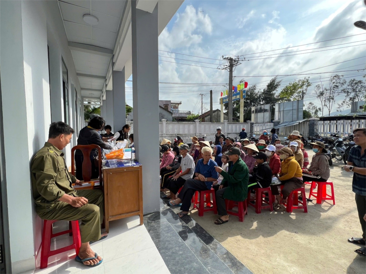 Hình 4. Người dân vùng lũ có mặt từ rất sớm để được khám và kiểm tra sức khỏe sau đợt lũ.