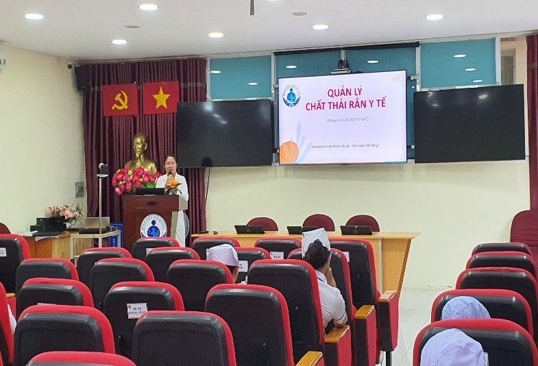 Ngày 12 và 19/10/2023, Bệnh viện tổ chức tập huấn “Quản lý chất thải y tế” cho toàn bộ NVYT và nhân viên các công ty dịch vụ thuê ngoài về phân định, phân loại và thu gom chất thải y tế. Mục đích của buổi tập huấn giúp cho nhân viên ôn lại quy trình phân loại chất thải y tế, đặc biệt là nhóm nhân viên mới, hướng tới môi trường bệnh viện xanh – sạch – đẹp. Trong tất cả các buổi tập huấn có hơn 2000 NVYT và nhân viên các công ty dịch vụ thuê ngoài hưởng ứng tham gia.
