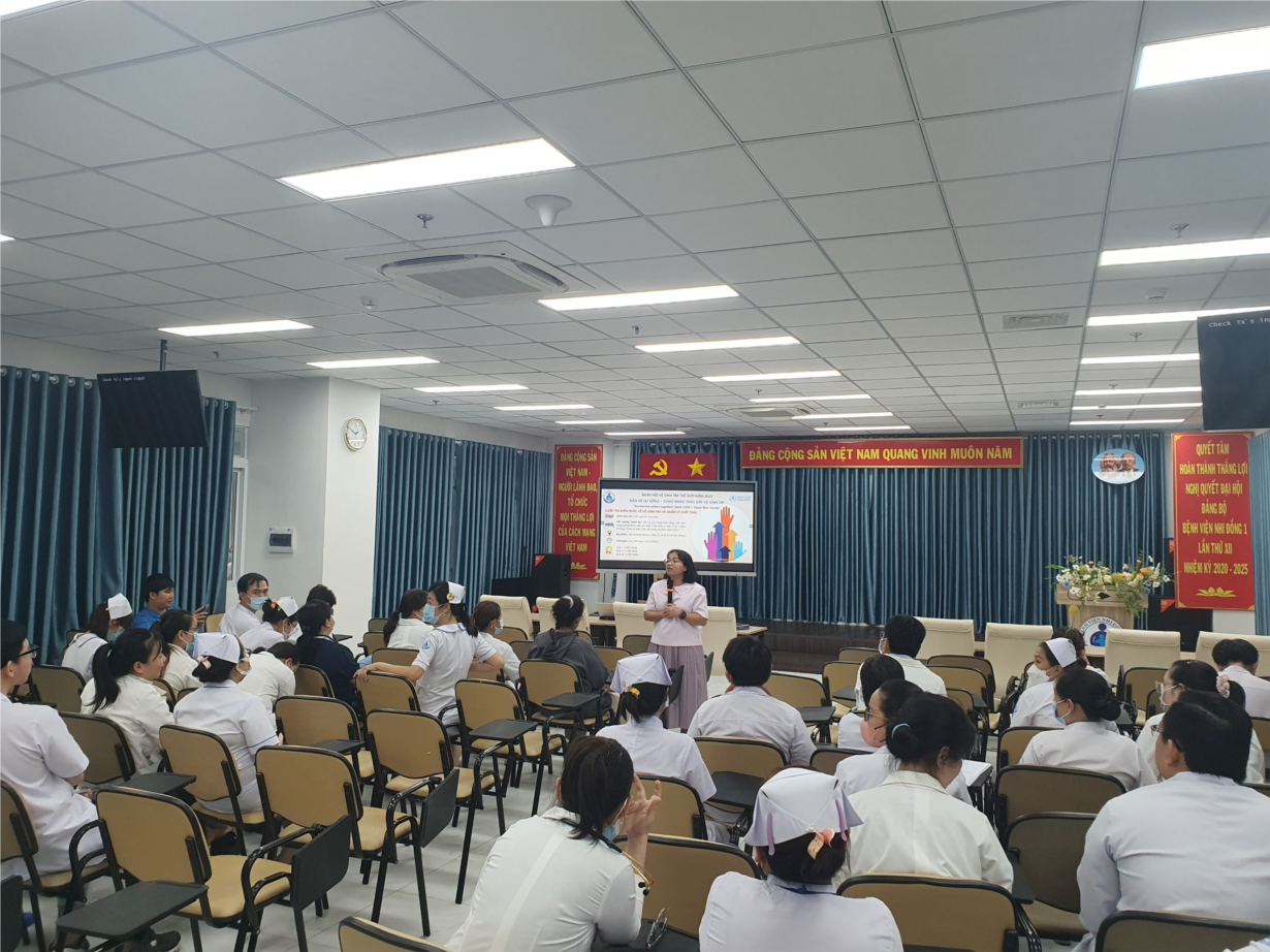 Với mục tiêu tăng cường tuân thủ vệ sinh tay (VST) và phân loại chất thải y tế (CTYT) đúng của nhân viên y tế (NVYT), người bệnh và thân nhân bệnh Nhi. Trong khuôn khổ thực hiện kế hoạch tổ chức Ngày hội Vệ sinh tay và Vệ sinh bệnh viện năm 2023, Bệnh viện Nhi Đồng 1 đã tổ chức chuỗi các hoạt động hưởng ứng, thu hút được sự tham gia đông đảo của nhân viên y tế.