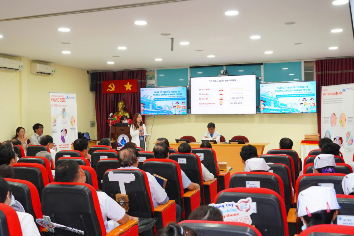 Đặc biệt, sau buổi lễ phát động, Bệnh viện Nhi Đồng 1 đã tổ chức buổi Hội thảo với chủ đề “Phòng, chống kháng thuốc - Hành động ngay: Bảo vệ hiện tại – Bảo đảm tương lai”. Hoạt động này đã thu hút sự tham gia của đông đảo các lãnh đạo khoa, phòng, các bác sĩ, dược sĩ và điều dưỡng trong bệnh viện, với hơn 150 đại biểu tham dự. Buổi Hội thảo tập trung vào những giải pháp thực tiễn nhằm tối ưu hóa việc sử dụng kháng sinh, tăng cường tuân thủ các chiến lược điều trị, phát huy vai trò phối hợp đa ngành trong chương trình quản lý sử dụng kháng sinh và chia sẻ kinh nghiệm triển khai từ các mô hình thành công trong và ngoài nước. Những nội dung này đã góp phần cung cấp cái nhìn toàn diện, tăng cường hiểu biết và hỗ trợ nâng cao năng lực chuyên môn cho đội ngũ nhân viên y tế trong công tác phòng, chống kháng thuốc.