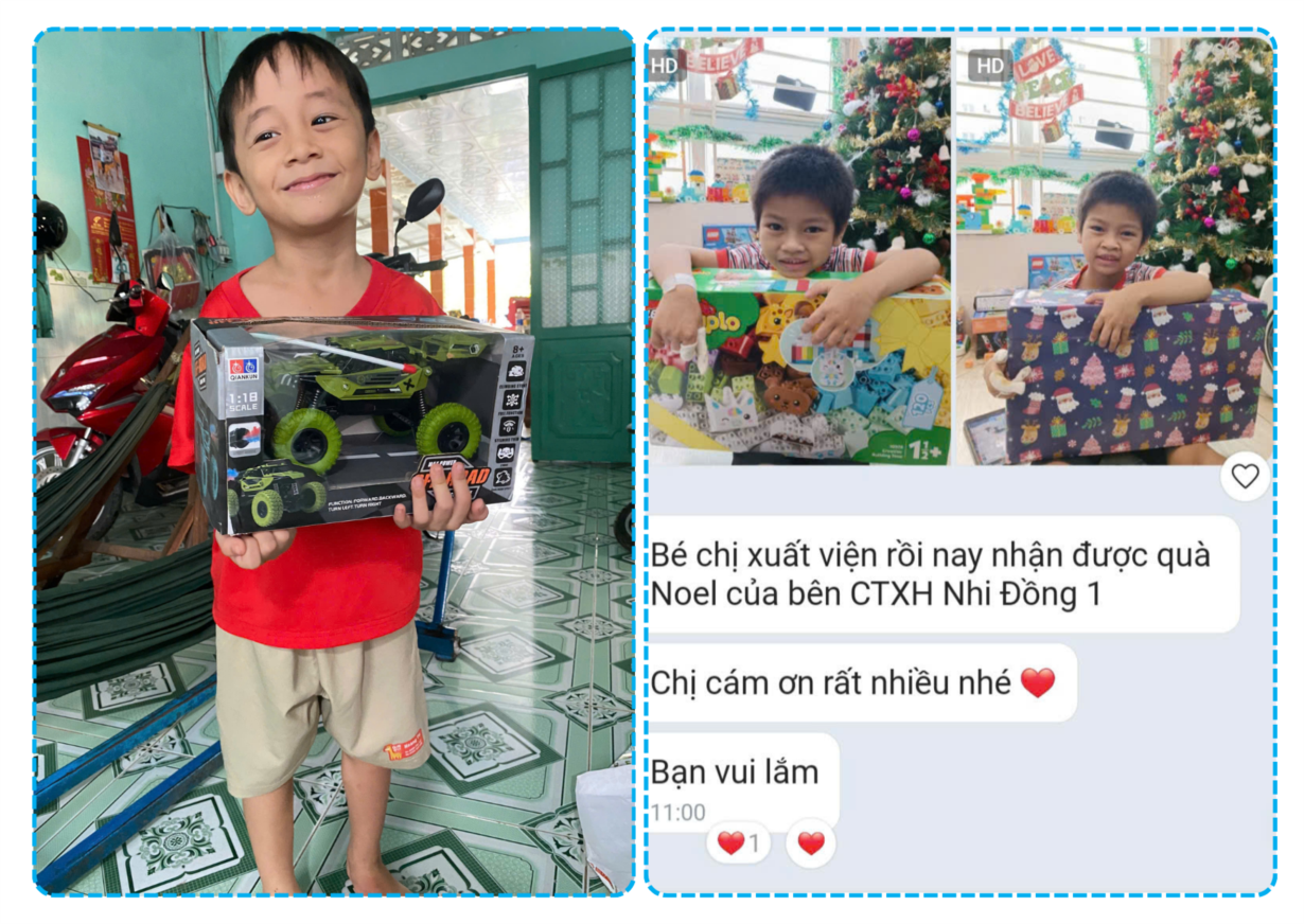 Trong không khí Noel, những phần quà Noel ấm áp đã được Bệnh viện Nhi đồng 1 phối hợp cùng nhà hảo tâm gửi tới tận nhà, trao gửi yêu thương cho các bệnh nhi có hoàn cảnh khó khăn đã điều trị tại Bệnh viện. Hoạt động không chỉ mang ý nghĩa hỗ trợ vật chất mà còn là sự động viên tinh thần, giúp các em nhỏ cảm nhận được sự quan tâm, sẻ chia của cộng đồng.
