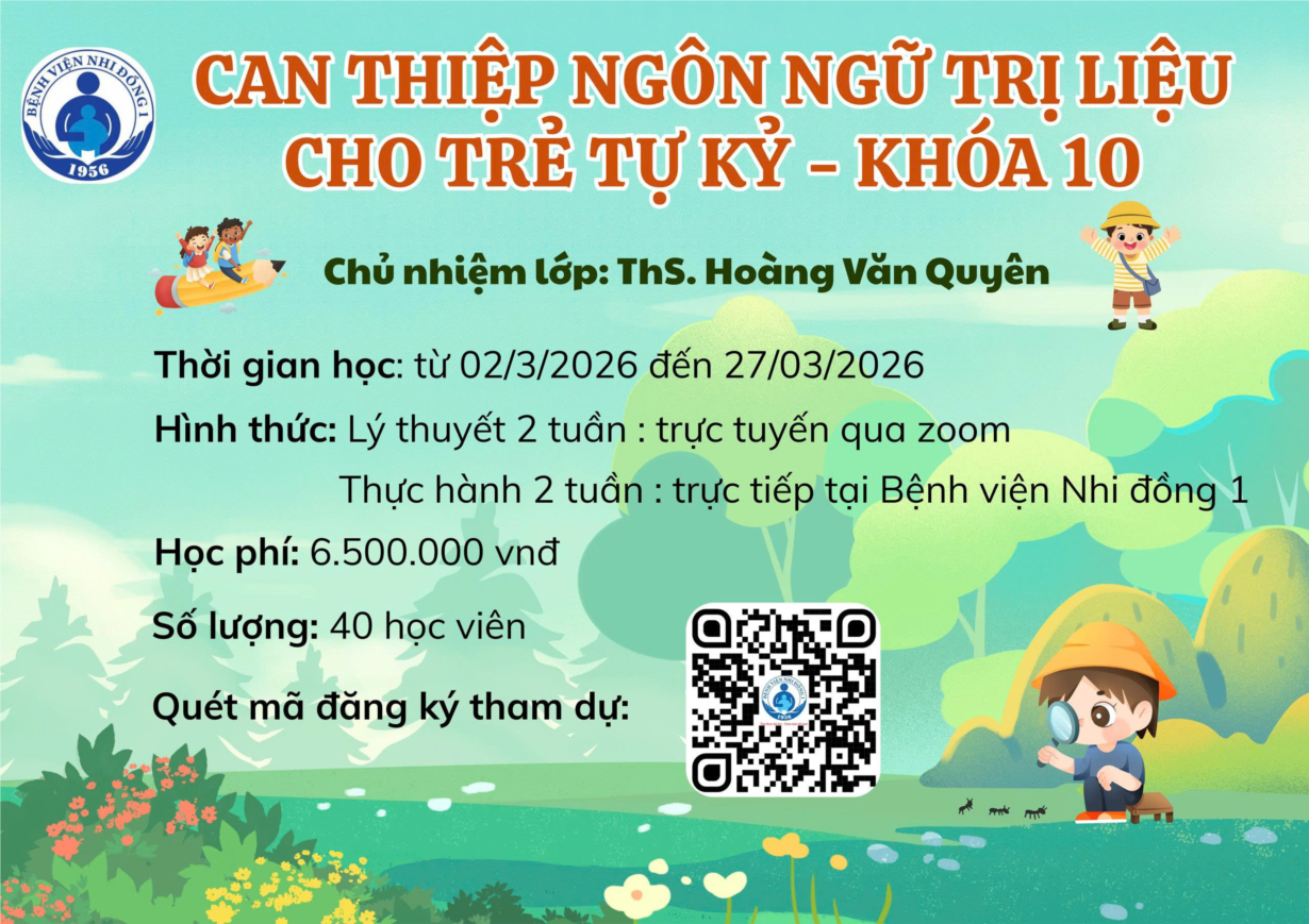 Đứng trước tình hình đó, chúng tôi nhận thấy việc đào tạo nguồn nhân lực làm trong lĩnh vực ngôn ngữ trị liệu cho trẻ tự kỷ rất cần thiết. Bệnh viện Nhi Đồng 1 tổ chức lớp huấn luyện “Can thiệp Ngôn ngữ trị liệu cho trẻ rối loạn phổ tự kỷ - Khóa 10” với thông tin chi tiết như sau: