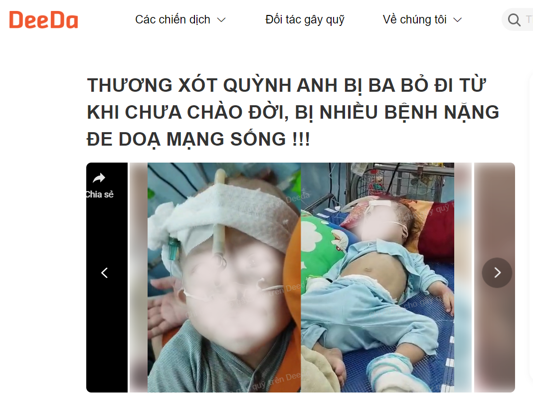 (Thông tin bệnh nhi được đăng trên website)