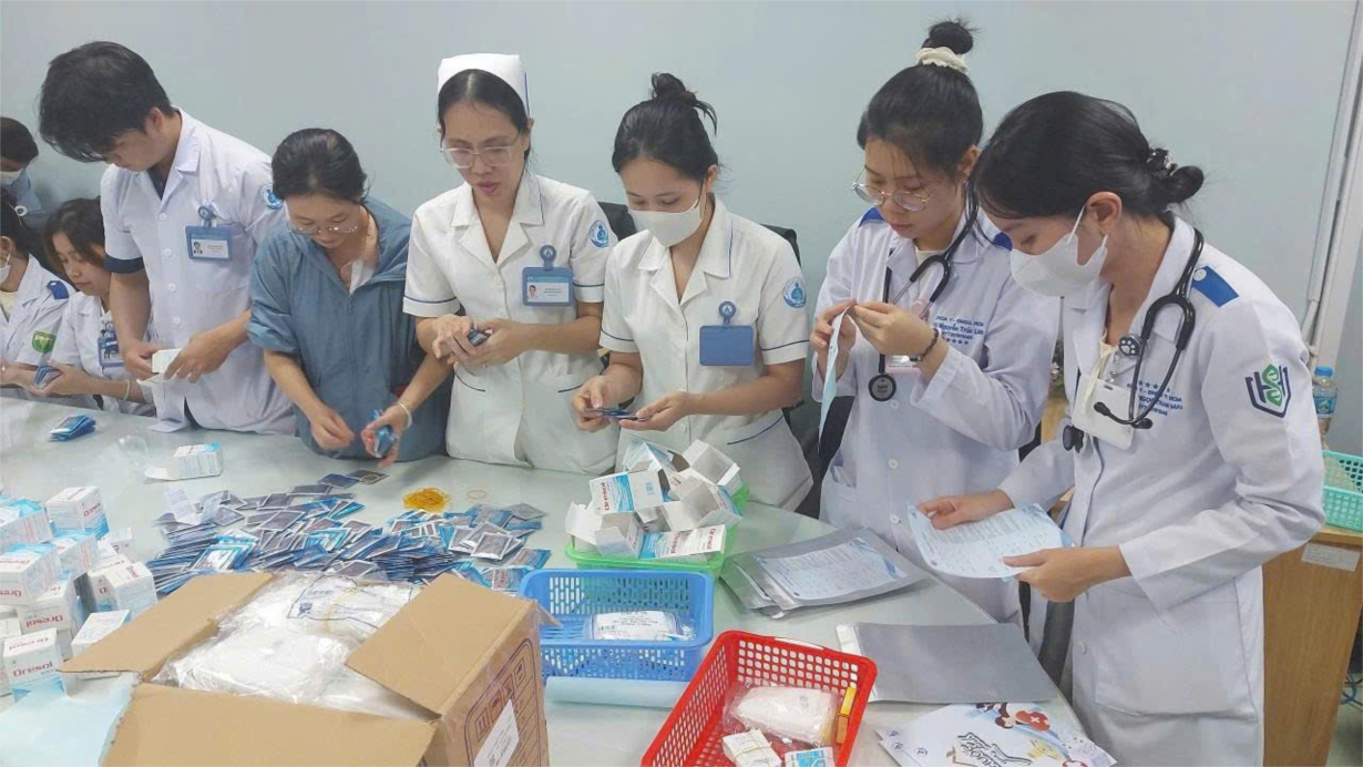 Đây là hành động thiết thực nhằm giúp người dân chủ động chăm sóc sức khỏe, phòng ngừa và điều trị sớm các bệnh lý thường gặp trong và sau bão lũ. Chủ nhật vừa qua, Bệnh viện Nhi Đồng 1 đã huy động tập thể nhân viên ở lại sau ca trực để cùng làm và chuyển gấp 500 túi thuốc (đợt 1) đến Bệnh viện Đa khoa Phú Yên. Hôm nay Bệnh viện lại tiếp tục gửi thêm 1000 túi thuốc đến Sở y tế TP.HCM để điều động đến khu vực người dân cần hỗ trợ.