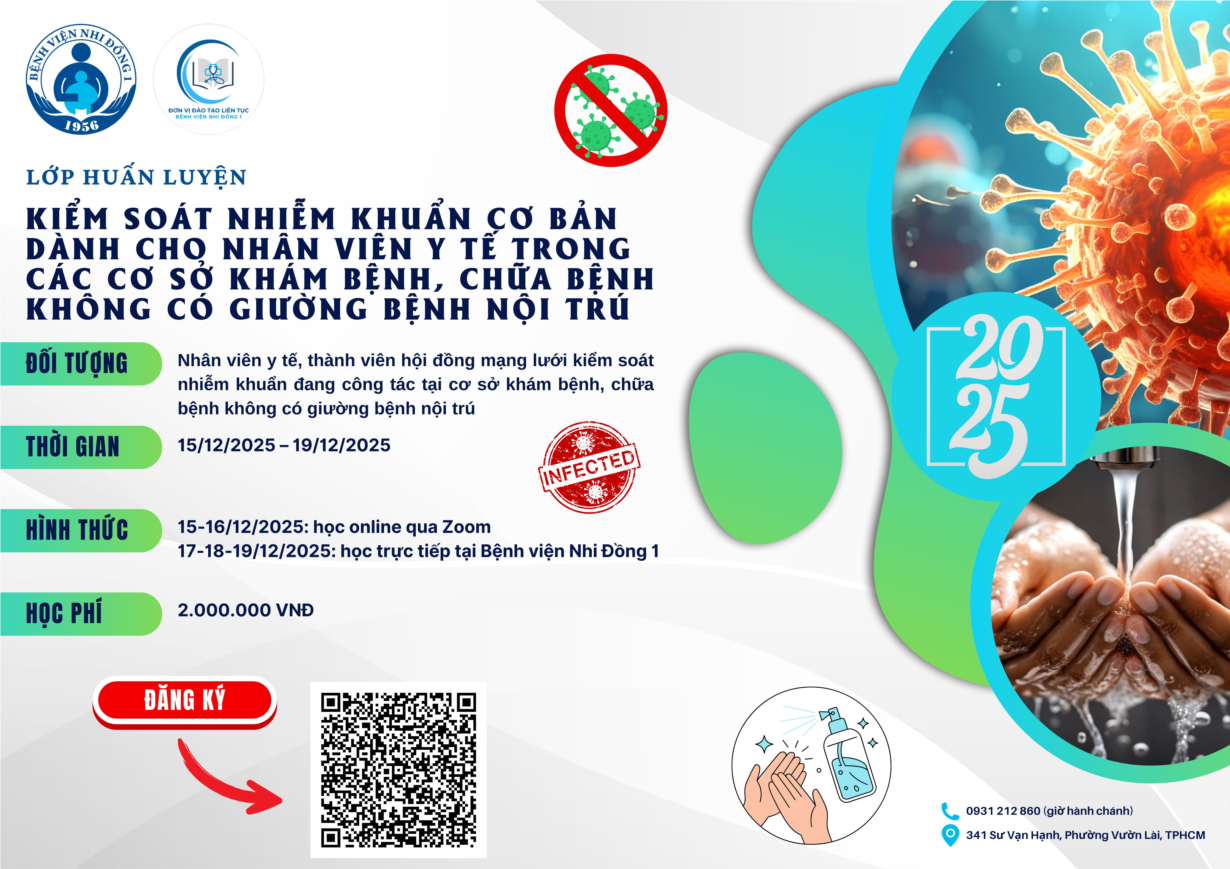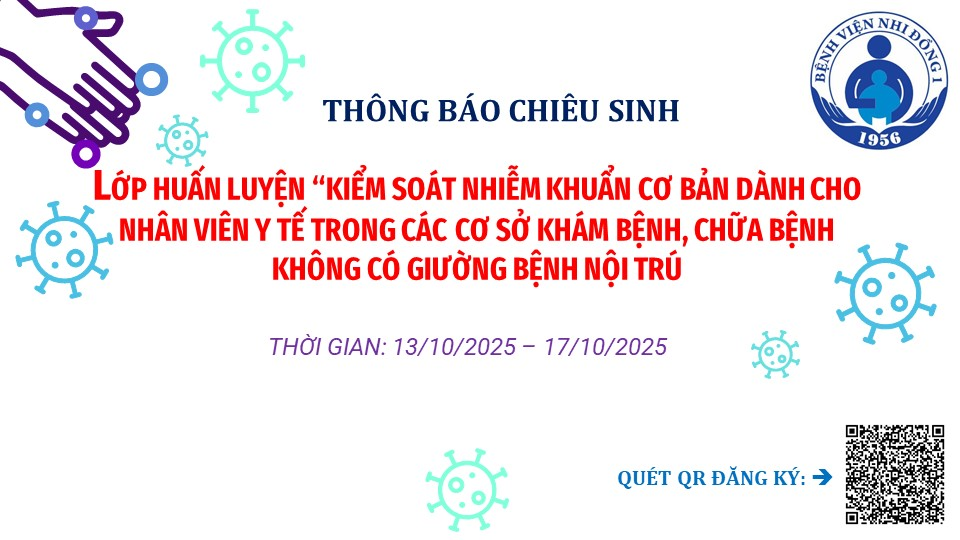 Bệnh viện Nhi Đồng 1 - Nhằm cung cấp và cập nhật kiến thức, kỹ năng, thực hành kiểm soát nhiễm khuẩn cho hội đồng mạng lưới tại các cơ sở khám bệnh, chữa bệnh, Bệnh viện Nhi Đồng 1 tổ chức lớp huấn luyện “Kiểm soát nhiễm khuẩn......