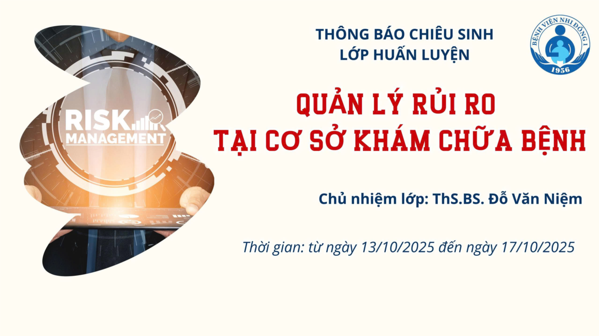 Bệnh viện Nhi Đồng 1 - Nhằm cung cấp kiến thức và phát triển kỹ năng cá nhân cho nhân viên chuyên trách trong lĩnh vực Quản lý rủi ro – An toàn người bệnh, nhân viên trực tiếp xử lý sự cố và các cán bộ quản lý, Bệnh viện Nhi......