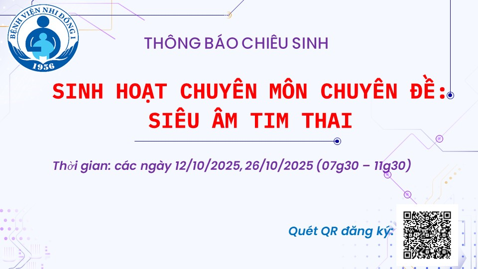 Bệnh viện Nhi Đồng 1 - Bệnh viện Nhi Đồng 1 tổ chức chuỗi sinh hoạt chuyên môn với chủ đề: “Siêu âm tim thai” với thông tin chi tiết như sau:...