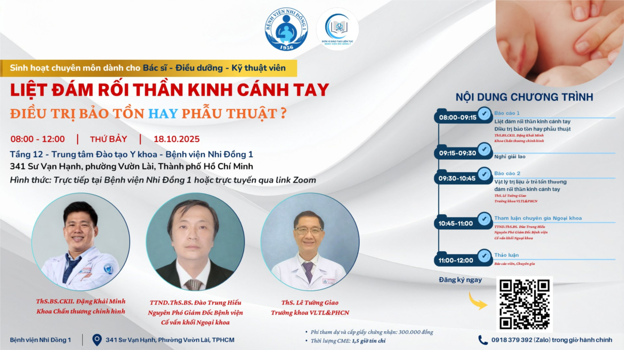 Bệnh viện Nhi Đồng 1 - Bệnh viện Nhi Đồng 1 tổ chức chương trình sinh hoạt chuyên môn chủ đề “Quản lý ruột an toàn và hiệu quả ở trẻ em: Vai trò của người chăm sóc” sẽ là cơ hội để các điều dưỡng – kỹ thuật viên cập nhật kiến......
