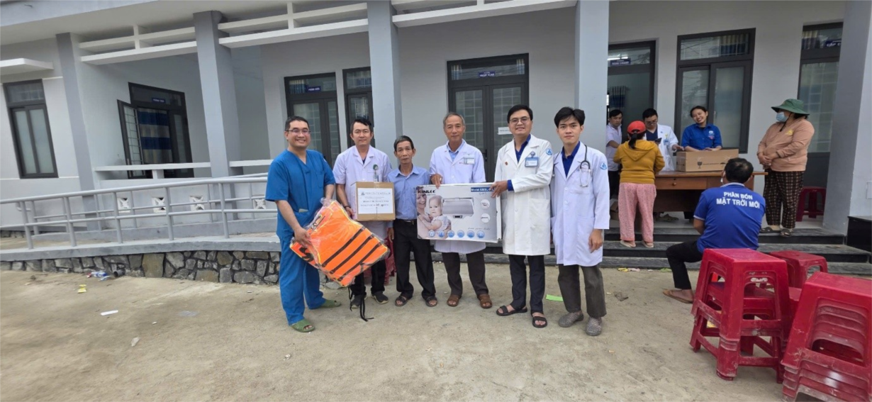 Đoàn viên, thanh niên trao tặng thuốc, vật tư y tế và phao cứu hộ cho Trạm Y tế xã Hòa Xuân