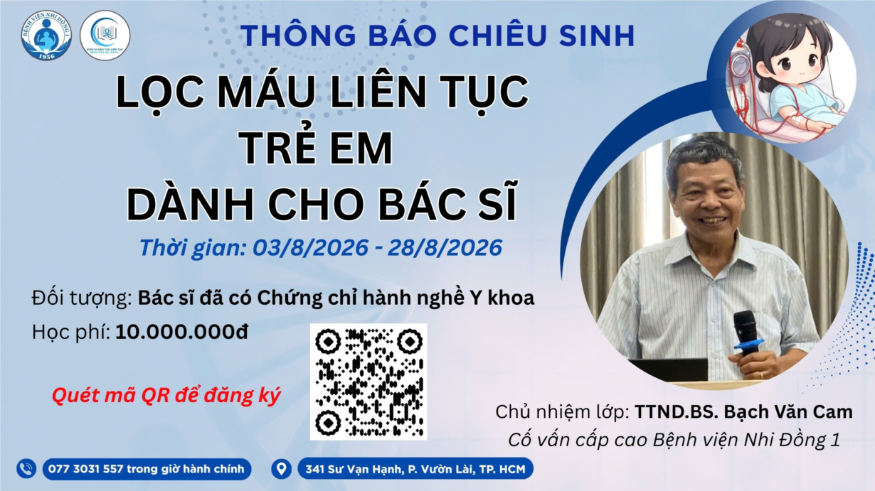Bệnh viện Nhi Đồng 1 - Nhằm cập nhật kiến thức chuyên môn và nâng cao năng lực chẩn đoán, chỉ định và theo dõi điều trị lọc máu ở trẻ em, Bệnh viện Nhi Đồng 1 tổ chức lớp huấn luyện “Lọc máu liên tục trẻ em dành cho Bác sĩ”......