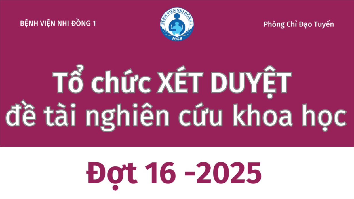 Bệnh viện Nhi Đồng 1 - Thực hiện Quyết định số 3914/QĐ-BVNĐ1 ngày 10/11/2025, phòng Chỉ Đạo Tuyến tổ chức thực hiện xét duyệt nghiên cứu y sinh học Đợt 16 năm 2025. Phòng Chỉ Đạo Tuyến trân trọng thông báo đến:...