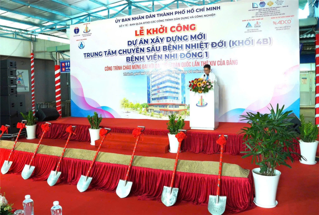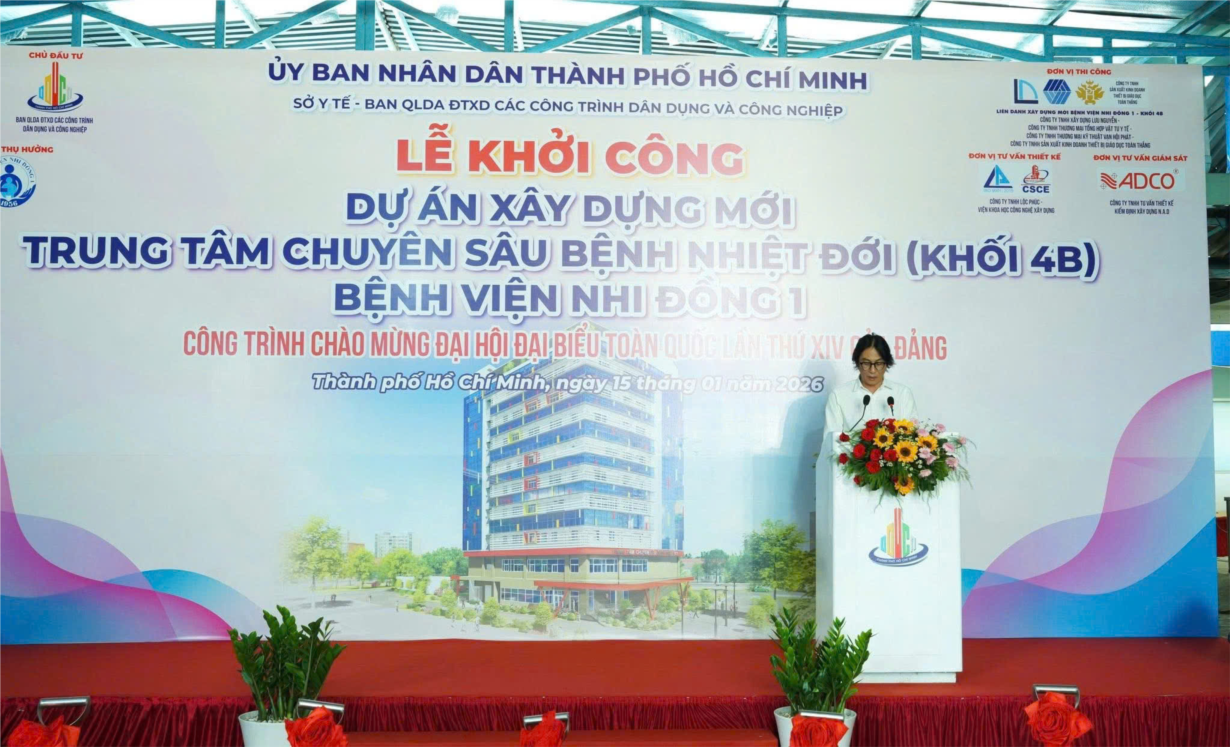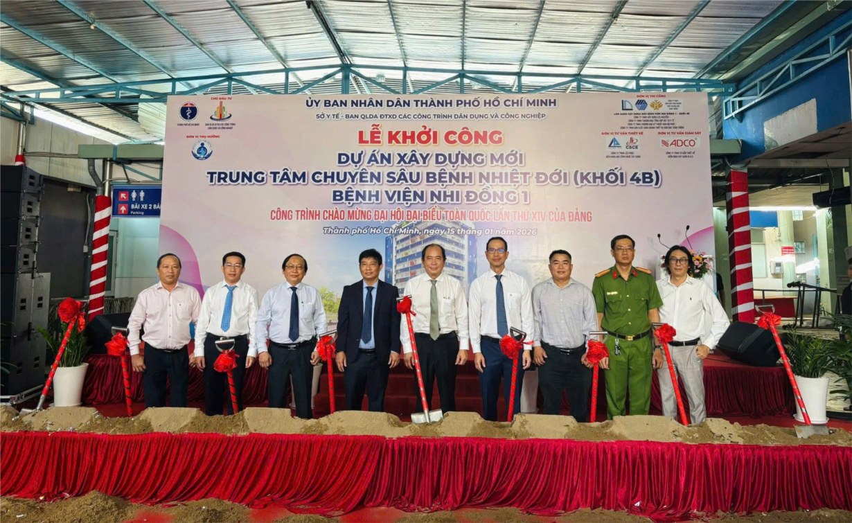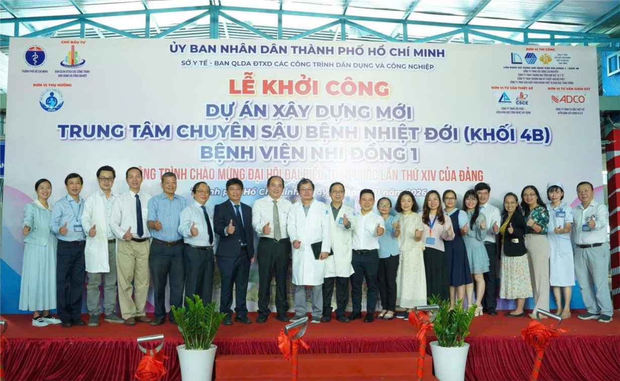 Sáng ngày 15/01/2026, trong không khí phấn khởi chào mừng Đại hội đại biểu toàn quốc lần thứ XIV của Đảng, Ban Quản lý dự án đầu tư xây dựng các công trình dân dụng và công nghiệp TP.HCM tổ chức lễ khởi công Dự án xây dựng mới Trung tâm chuyên sâu bệnh nhiệt đới (khối 4B) tại Bệnh viện Nhi Đồng 1.